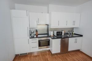 The apartment features one bedroom with two beds along with a separate living room equipped with a flat-screen TV featuring cable channels. Guests can prepare meals in the fully equipped kitchen that includes both a full kitchen setup and kitchenette facilities. The private bathroom comes complete with body soap, shampoo, towels, and a hairdryer. Additional in-room amenities include heating, an iron, bed linen, baby cot or crib availability, as well as a washing machine.