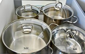 Jedes Apartment verfügt über ein bis drei Schlafzimmer sowie Wohnbereiche mit Sofas und Sitzgelegenheiten. Die Küchen sind umfassend ausgestattet mit Kochfeldern, Kühlschränken, Öfen oder Mikrowellen, teilweise Geschirrspülern, Kaffeemaschinen, Toastern und Wasserkochern. Zur weiteren Ausstattung gehören Flachbild-Sat-TV, Schreibtische, Kleiderschränke oder Einbauschränke sowie Bügelmöglichkeiten inklusive Bügeleisen und -brett, ausgewählte Apartments verfügen zusätzlich über Waschmaschinen.