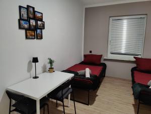 Each double room features two beds and offers a flat-screen TV along with a washing machine. Guests have access to a shared bathroom equipped with complimentary toiletries, slippers, shampoo and a hairdryer. The fully equipped kitchen includes an oven, stovetop, dishwasher, refrigerator, microwave as well as coffee machine and tea making facilities. Additional room amenities consist of heating, wardrobe or closet space, work desk, bedside sockets and carpeting or hardwood floors.