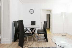 Accommodation comprises a fully equipped kitchen complete with a stovetop, refrigerator, dishwasher, microwave, toaster, coffee machine as well as tea and coffee making facilities plus kitchenware and a dining table with high chair for children. The living room features a flat-screen TV and sofa bed while other in-room amenities include heating, hardwood/parquet flooring alongside carpeted floor areas, ironing facilities including an iron and board, washing machine with tumble dryer function, clothes drying rack, wardrobe/closet space as well as towels and bed linen provided.