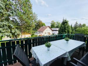 Featuring a balcony with lake views and a private boat dock, Dachwohnung mit Wasserblick und eigenem Bootssteg is located in the Treptow-Köpenick district of Berlin. This spacious apartment includes one room with three bedrooms and offers free WiFi as well as on-site parking at no extra charge.