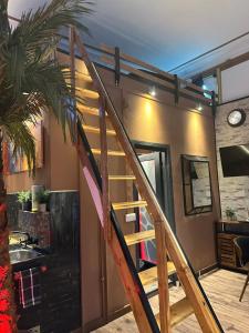 Patro na spaní bylo hodně vysoko, takže pro malé děti to nebylo ideální. Byt měl zajímavý steampunkový styl s prostornými pokoji a originálním nábytkem. Poloha byla super, všechno důležité - Ostkreuz, Eastside Gallery i Warschauerstrasse - bylo kousek pěšky. Lidl byl taky blízko, což se hodilo. Sousedi byli fajn a pomohli při problémech s bránou. Celkově pohodová lokalita a netradiční bydlení.
