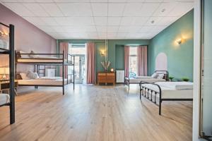The apartment features three separate bedrooms totaling seven beds, along with two bathrooms equipped with showers and complimentary toiletries including body soap, shampoo, and hairdryer. Guests can enjoy a fully equipped kitchen that includes a stovetop, oven, microwave, dishwasher, refrigerator, toaster as well as coffee machine and electric kettle for tea and coffee making. Additional room amenities include parquet flooring throughout, heating facilities, an iron with ironing board plus clothes drying rack, a work desk coupled with seating areas featuring a sofa bed.