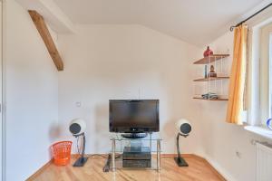 This soundproofed apartment comprises one bedroom with two beds, a living room furnished with a sofa and flat-screen TV, and one bathroom featuring slippers, shampoo, conditioner, body soap, hairdryer, bathtub and shower facilities. Guests will find ironing facilities including an iron and board, towels, bed linen, heating, wardrobe space as well as a work desk for convenience.