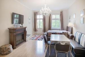 Each apartment offers a private entrance and features hardwood floors along with air conditioning and heating. Guests can enjoy spacious living rooms with comfortable sofas, flat-screen TVs equipped with streaming services, work desks, wardrobes, irons with ironing boards as well as washing machines and tumble dryers. Bedrooms include beds ranging from studios with one bed to larger units offering up to six beds. Kitchens are fully equipped including stovetops, refrigerators, dishwashers, ovens or microwaves depending on the unit type.