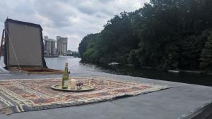 Gli ospiti possono usufruire dello spazio esterno sulla terrazza godendo delle viste suggestive offerte da questa unica abitazione galleggiante.