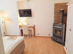 Kostenfreies WLAN steht im gesamten Objekt zur Verfügung. Zur Unterhaltung tragen ein Flachbildfernseher mit Satellitenkanälen sowie ein Kamin bei, der eine behagliche Atmosphäre schafft. Waschmaschine und Trockner sind in der ebenerdigen Wohnung vorhanden, der Zugang zum Zimmer erfolgt barrierefrei per Aufzug.