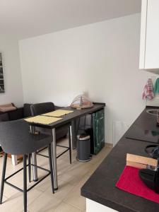 The apartment features one bedroom, a living room, and a private bathroom equipped with complimentary toiletries including shampoo, conditioner, body soap, slippers, a hairdryer, and toilet facilities. The fully equipped kitchenette contains a stovetop, refrigerator, dishwasher, coffee machine as well as tea and coffee making facilities. Additional in-room amenities include tile flooring, heating system, an iron with ironing board, washing machine, work desk seating area with sofa and wardrobe space.