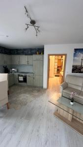 Accommodation consists of one living room, one separate bedroom, and a bathroom featuring a walk-in shower without steps for easy access. Guests will find an equipped kitchenette complete with a stovetop, refrigerator, dishwasher, oven, microwave, toaster, coffee machine including tea and coffee making facilities, electric kettle and kitchenware for meal preparation. Additional in-room amenities include towels, bed linen with non-feather pillows provided for comfort as well as seating area options like a sofa bed and wardrobe space alongside practical items such as a washing machine and clothes drying rack.
