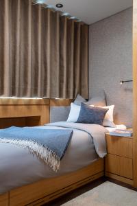The boat includes two bedrooms, a living room with a fireplace, and two bathrooms featuring both baths and showers. The fully equipped kitchen provides modern conveniences such as a stovetop, dishwasher, microwave, coffee machine and tea-making facilities alongside kitchenware and an oven. Guests will enjoy additional in-room amenities including a work desk, seating area, bed linens, towels, heating facilities and wardrobe space.