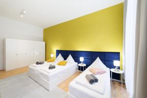 The spacious apartments each comprise a living room, multiple bedrooms totaling up to six beds across units, and one or two bathrooms equipped with bathtubs or showers plus complimentary toiletries. Guests enjoy soundproofed rooms with hardwood or carpeted floors, flat-screen TVs, wardrobes, work desks and seating areas. Additional in-room features include washing machines, ironing facilities with irons and boards as well as baby cots or cribs.