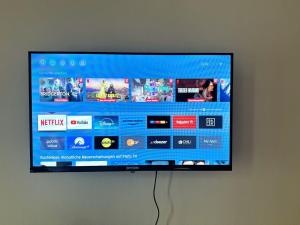 The bathroom contains complimentary toiletries including shampoo and body soap alongside a shower unit with hairdryer provided for convenience after long days exploring the city streets. High-speed internet access covers all areas through free WiFi allowing streaming services on television entertainment systems where guests can enjoy their favorite shows seamlessly during downtime.