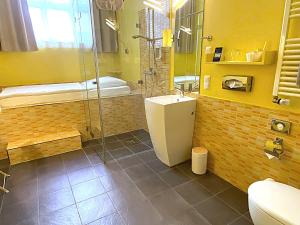 Hotel services encompass a breakfast room where freshly prepared buffet breakfasts are served each morning alongside an on-site restaurant offering additional dining choices. The property provides amenities such as a coffee machine in-room minibars electric kettles daily housekeeping laundry service private check-in/check-out luggage storage ironing services lift access to guest floors as well as a tour desk available through the 24-hour front desk reception area. Free WiFi coverage extends throughout all areas ensuring consistent internet access.