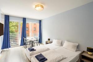 The family-run apartments vary in size and provide comfortable accommodations with cable TV, seating areas, modern kitchenettes equipped with refrigerators, microwaves, electric kettles, kitchenware, dining tables and private bathrooms. Each room includes heating, bed linen, towels, carpeted floors and wardrobes for guest convenience.