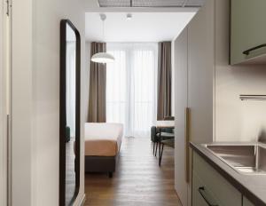 Each suite comprises one bedroom with either one or two beds, a private bathroom featuring a bath or walk-in shower along with complimentary toiletries, shampoo and body soap. The kitchens are fully fitted with stovetops, refrigerators, toasters, kitchenware, dining tables as well as coffee machines and electric kettles. Guests will also find amenities such as heating, wardrobes, work desks, flat-screen TVs, sofas or sofa beds in the living areas.