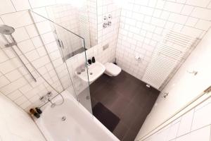 Die Unterkunft umfasst zwei Betten im Einzelzimmer sowie eine voll ausgestattete Küche mit Herdplatte, Backofen, Kühlschrank, Geschirrspüler und kompletter Küchenausstattung. Zu den weiteren Annehmlichkeiten im Zimmer zählen Heizung, Bettwäsche, Handtücher, ein Arbeitstisch sowie auf Wunsch ein Babybett oder Kinderbett. Das Badezimmer ist ausgestattet mit Shampoo, Duschgel, Fön sowie Badewanne oder Dusche.