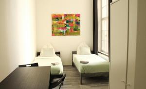 Additional amenities include heating facilities along with ironing equipment consisting of iron and ironing board, towels and bed linens are provided for comfort. Entertainment options feature a flat-screen TV with bedside sockets available in the living area which also contains seating arrangements plus workspace desk accommodations to support various guest needs.