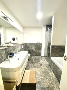 The accommodation consists of suites and twin rooms equipped with fully fitted kitchens featuring stovetops, refrigerators, dishwashers and ovens. Rooms include roll-in showers or bathtubs with bidets in private bathrooms. Additional in-room amenities comprise flat-screen satellite TVs, washing machines, irons with ironing boards, trouser presses, seating areas with sofas or sofa beds as well as work desks and wardrobes.