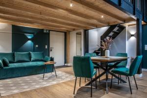 The accommodation comprises one bedroom alongside a living room equipped with a flat-screen TV featuring streaming services. The fully fitted kitchen contains essential appliances including a stovetop, microwave, refrigerator, coffee machine, electric kettle as well as kitchenware for meal preparation complemented by a dining table. Additional in-room amenities include towels and bed linen provided for convenience, there is also heating available plus ironing facilities including an iron and ironing board.