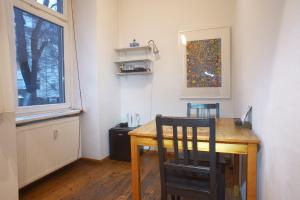A quiet neighborhood with many nearby coffee shops and restaurants provided a comfortable and convenient stay. The room was clean, well-stocked, and located on the ground floor with only a few steps to climb. The property featured a beautiful backyard garden perfect for breakfast, where birds could be heard near Alexanderplatz. The location was superb and well connected by transportation. A small fridge was available despite the absence of a kitchen.