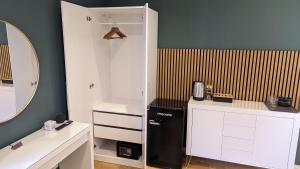 Accommodation includes double rooms featuring one bed each with parquet flooring and seating areas. Guests will find wardrobes, safety deposit boxes, work desks, sofas, as well as heating throughout the units. Shared bathrooms outside the rooms are equipped with walk-in showers and hairdryers. In-room extras include non-feather pillows, bed linen, towels, irons and flat-screen TVs with streaming services such as Netflix.