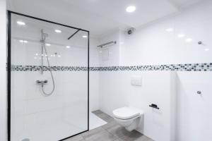 Each apartment unit features a private entrance and shared bathroom outside the room, equipped with shower facilities including shampoo supplies and either a bathtub or shower option. Guests enjoy spacious interiors fitted with wardrobes, work desks, feather pillows, heating, hardwood flooring, ironing facilities and seating areas that include sofas or sofa beds alongside flat-screen TVs.