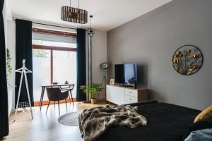 El alojamiento consta de tres habitaciones junto con un baño que incluye ducha abierta sin escalones y bañera para mayor comodidad. La cocina americana totalmente equipada cuenta con electrodomésticos modernos como horno, placa vitrocerámica, lavavajillas, frigorífico, tostadora y hervidor eléctrico, además dispone de utensilios para preparar té o café así como menaje completo para comer en mesa. Entre los extras en la habitación hay ropa blanca (sábanas), toallas e instalaciones para planchar (plancha y tabla), sofá cama disponible según necesidad, armario amplio, espacio para trabajar, almohadas sintéticas hipoalergénicas junto con opciones plumíferas.