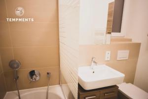 Each apartment features one bedroom with two beds, a private bathroom equipped with a bathtub and hairdryer, as well as a fully equipped kitchen including a stovetop, refrigerator, dishwasher, microwave oven, coffee machine and electric kettle. Additional in-room amenities include flat-screen TVs, wardrobes or closets for storage space, sofas or sofa beds for extra seating or sleeping options along with ironing facilities such as irons and boards. Bed linens and towels are provided throughout all units.