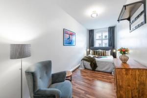 Located in Berlin's Mitte district, The Rheinsberger Mitte, 80m2, 2BR & Living Room, downtown location, Sleeps 6 is a spacious apartment offering city views and free WiFi. This one-room accommodation features two bedrooms and a living room with a pull-out sofa bed.