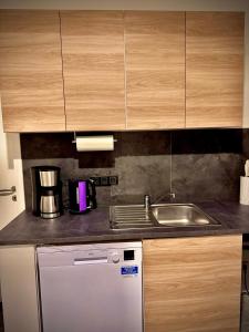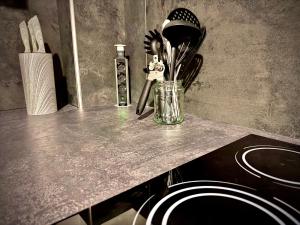 This accommodation provides a fully equipped kitchen with modern appliances such as a dishwasher, microwave, stovetop, refrigerator and toaster. Guests can enjoy meals at the dining table or use the barbecue grill outdoors on the terrace overlooking the garden. The living space boasts hardwood and tile flooring along with amenities like bed linen, heating, sofa bed, seating area, work desk, wardrobe and ironing facilities including an iron and ironing board.