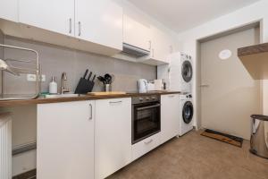 This accessible apartment features one bedroom and one bathroom equipped with a shower and complimentary toiletries. Guests will find a fully equipped kitchen including an oven, stovetop, dishwasher, refrigerator, coffee machine, electric kettle as well as tea and coffee making facilities. Additional in-room amenities include a flat-screen TV with streaming services, iron with ironing board, washing machine, sofa bed, work desk, feather pillows alongside soft towels and bed linens.